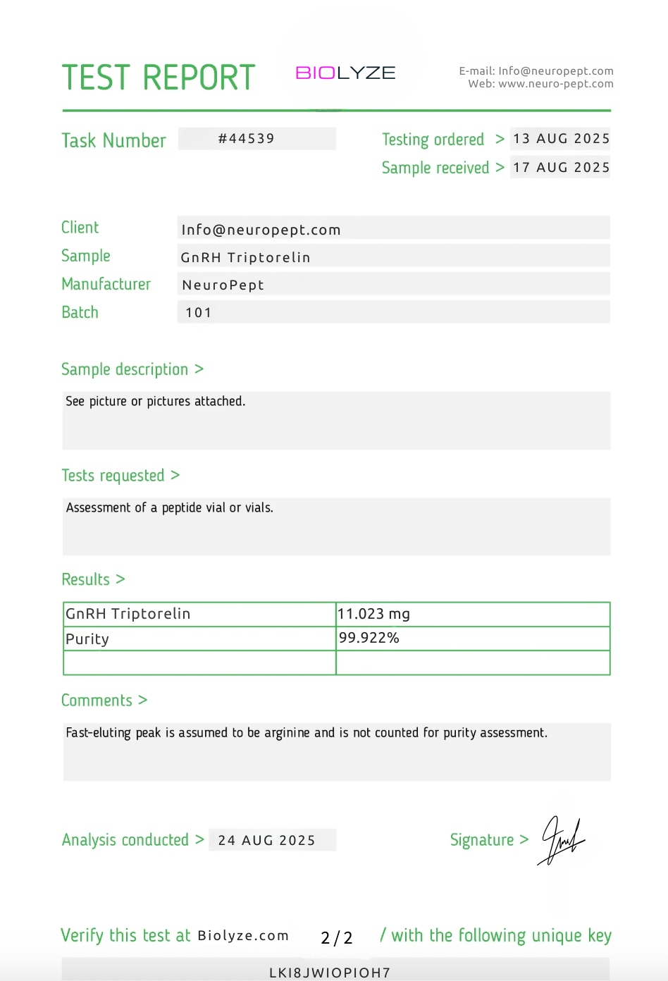 Each batch is produced under GMP-like conditions and lab-tested. Full specification documentation is available upon request.